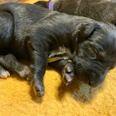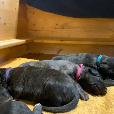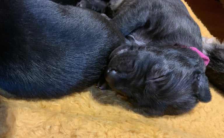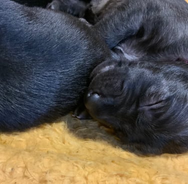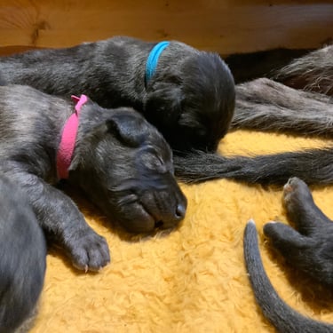 Und wenn wir gerade nicht Mama Faileas oder unsere liebe Ziehmama Gabi beschäftigen (oder dezent nerven), dann tun wir das, was Welpen am besten können: schlafen. Tief, fest und unglaublich süß.