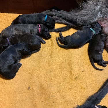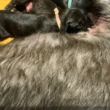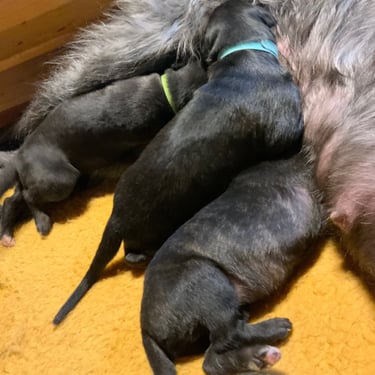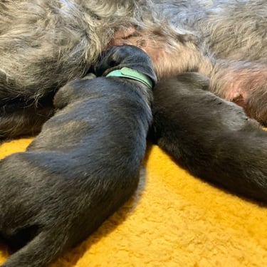Mama Faileas hat das Ganze dabei lässig und souverän gemeistert – ganz so, als würde sie das täglich machen. Inzwischen haben alle Minis ihr Geburtsgewicht verfünffacht. Ja, richtig gelesen. Leistungssport in Welpenform!